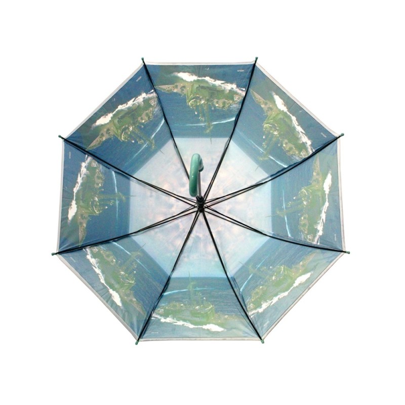 Automatyczna parasolka z motywem militarnym. Czasza parasolki wykonana została z grubej, wytrzymałej folii z kolorowym nadrukiem. Stelaż parasolki wykonany został z wysokiej jakości aluminium. Parasolka wyposażona została w wygodną do trzymania w dłoni rączkę.
