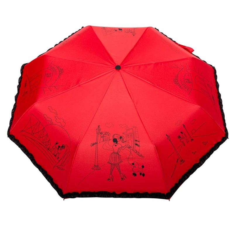 ►Czasza parasolki została obszyta falbanką co razem z subtelną grafiką stwarza romantyczny oraz jednocześnie nowoczesny look.