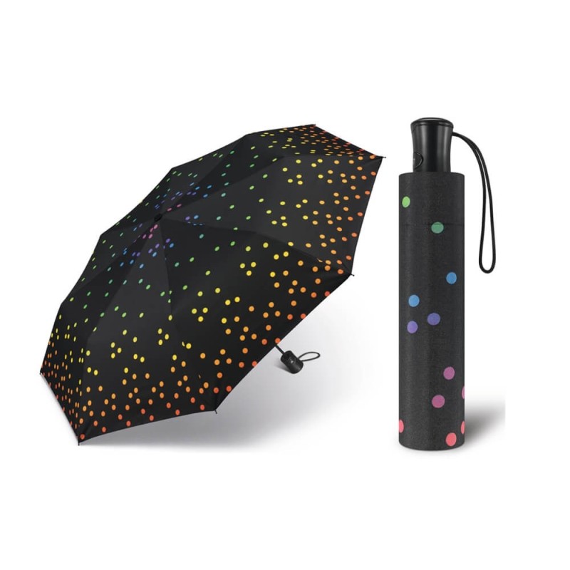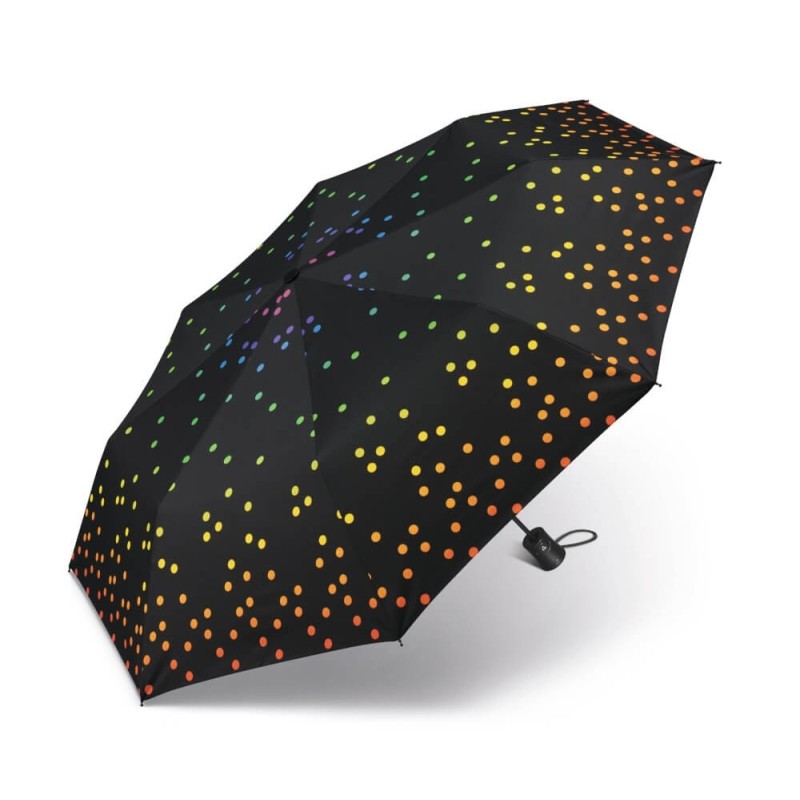 Automatyczna parasolka marki Happy Rain otwierana przy pomocy jednego przycisku, zamykana manualnie.