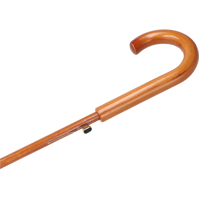 ► Parasolka wyposażona została w wygodną drewnianą zaokrągloną rączkę.