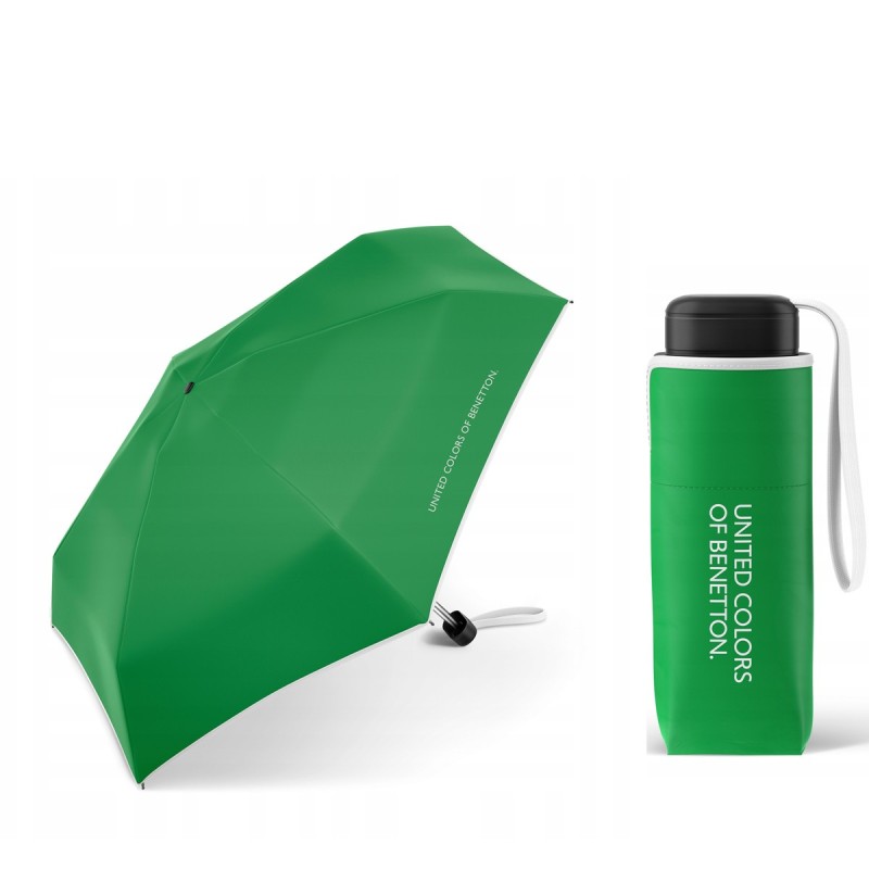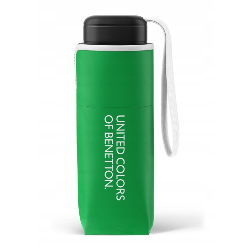 Manualna, lekka, kieszonkowa parasolka BENETTON United Colors jednokolorowa z kontrastowym obszyciem.